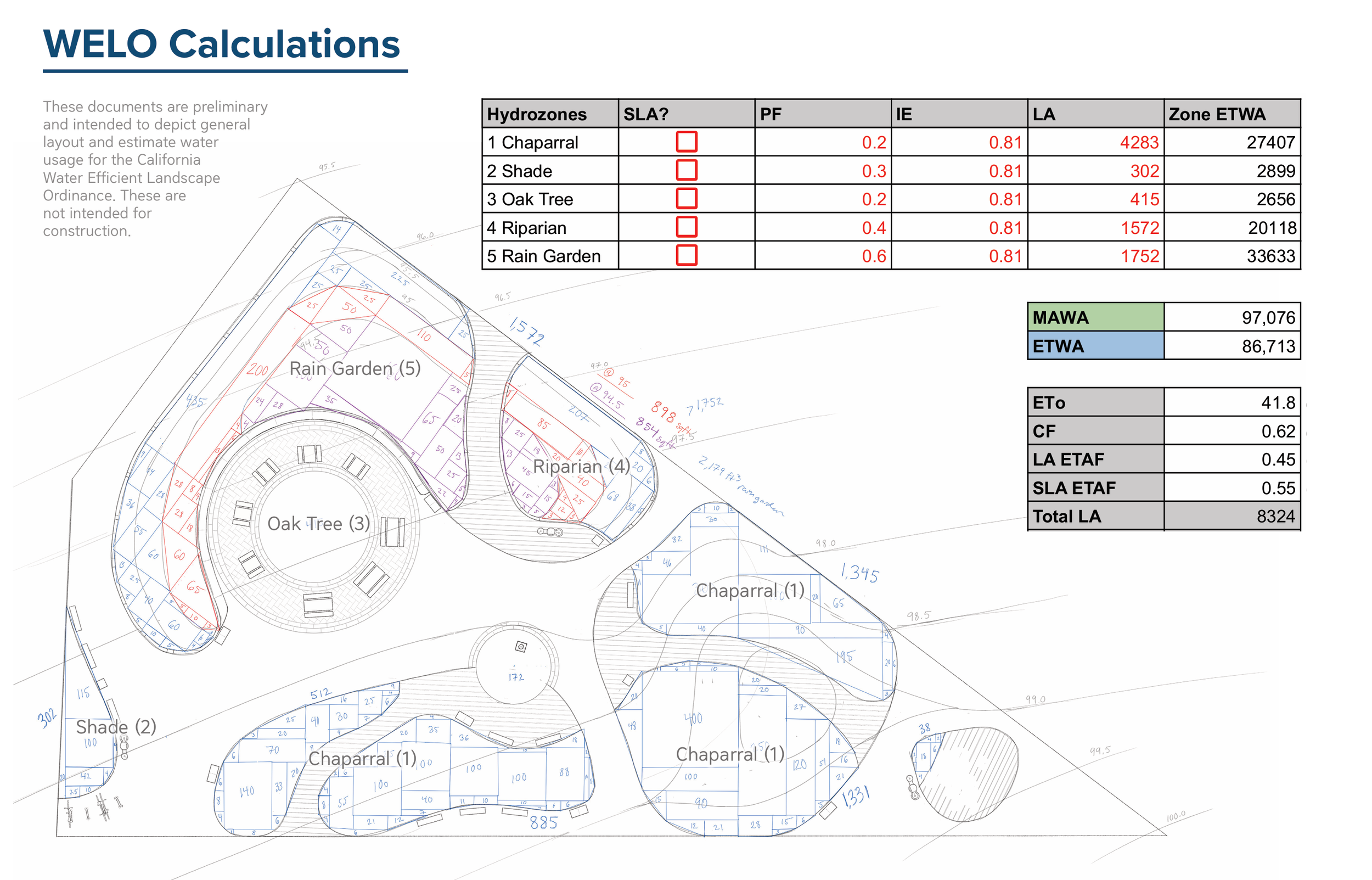 WELO calculations based on landscaping areas and Plant Selection. Designed and calculated by Nastia Garachtchenko.