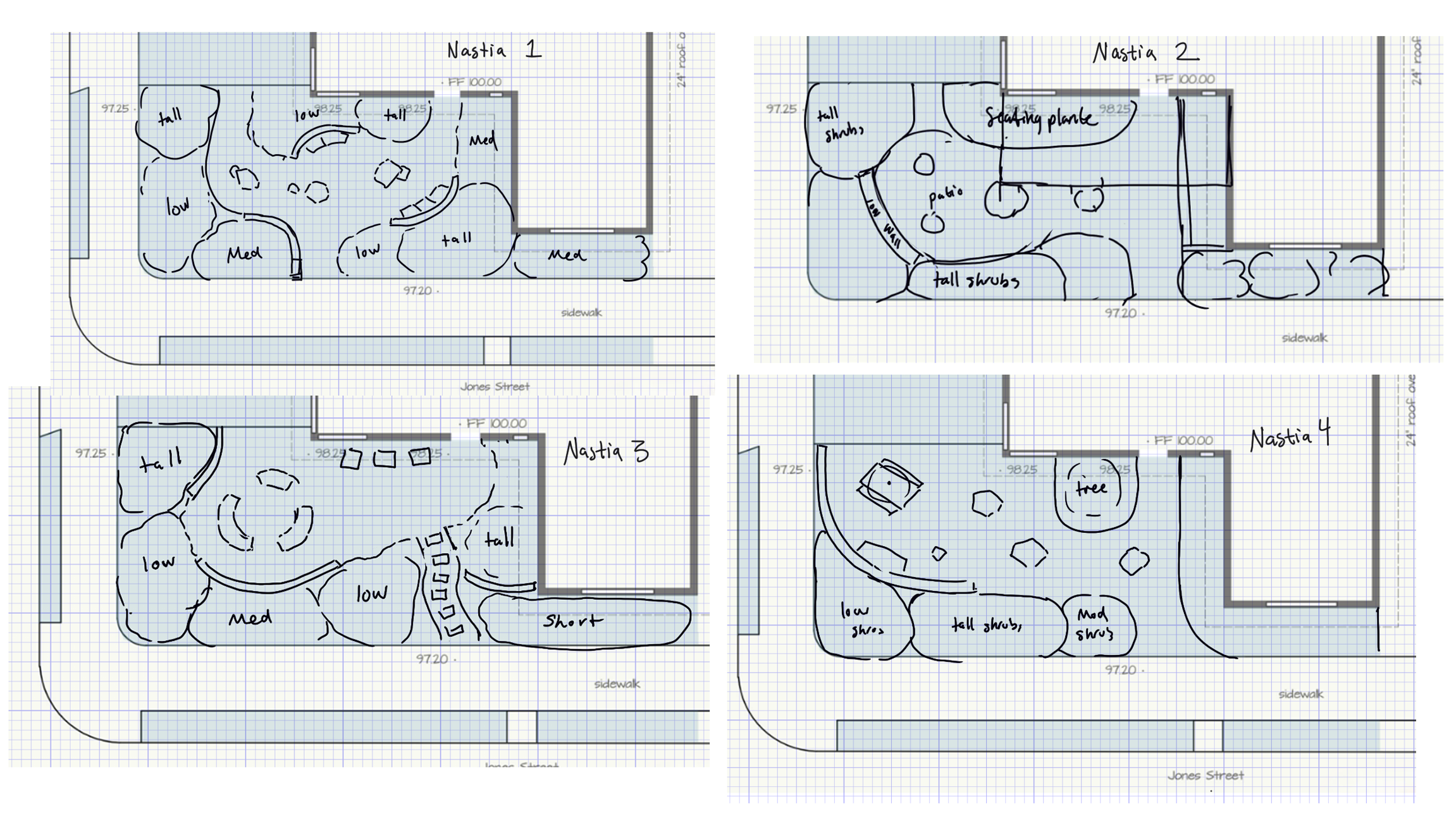 3D model plan for residential front yard. Modeled by Nastia Garachtchenko.